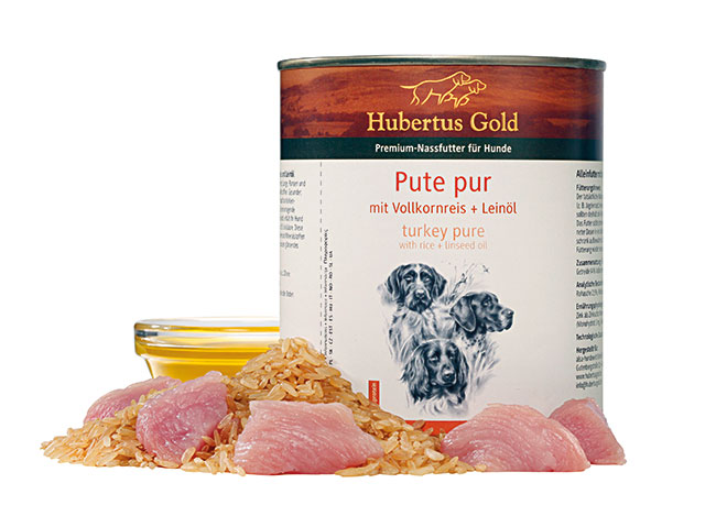 Pute pur mit Vollkornreis + Leinöl (66% Pute). Diese Vollnahrung aus bestem Putenfleisch und gesundem, leicht verdaulichem Reis ist ideal für Jagdhunde mit Magen- und Darmproblemen geeignet. Auch für Suchdiäten geeignet.
